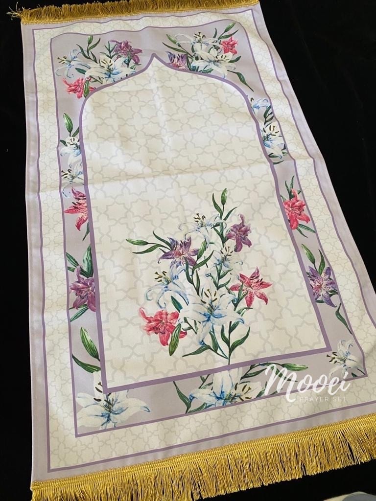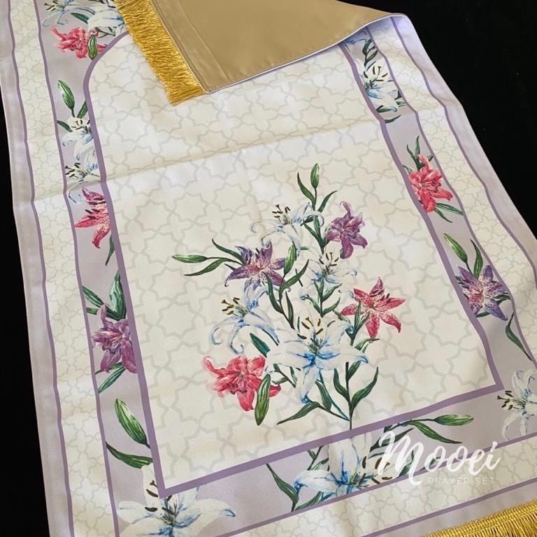 Sajadah cantik yang didesign dengan nuansa bunga Dandelion dan Lily. The new sajadah premium Memiliki lapisan linen dibagian bawah dan ukuran lebih besar sehingga membuat waktu personal kita bersama sang pencipta, Allah Subhanahu Wa Ta’ala, menjadi lebih khusyu dan nyaman.